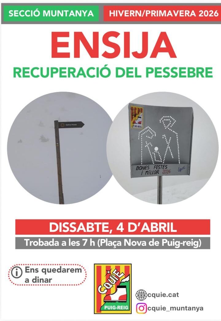 Cal portar esmorzar, roba d’abrigar i grampons. Si us voleu quedar a dinar cal que us apunteu abans del dijous dia 20 de febrer.